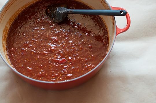 There are so many things in this book that I’ve marked to try. The Roasted Beet and Tomato Relish speaks to me (and I’ve got beets in the crisper as I type). The Danish Pickled Carrots call out my name (perhaps I could even convince my husband to eat them, since he loves both carrots and caraway). Eggplant Chutney! Indian-Spiced Garlic Chutney! Squash and Apricot Chutney! It’s a glorious time to be a chutney lover.