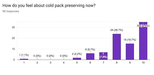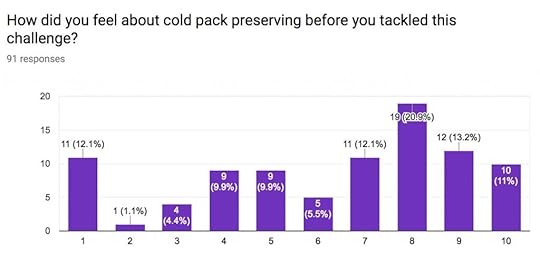 From the data that you all reported this month, it looks like most of you weren’t moved to make more than one batch. However, from the optional comments, it sounds like a lot of you are looking forward to trying out this skill later in the season when there’s more that’s appropriate for cold packing.