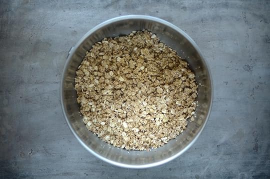 Combine the butter or coconut oil, almond butter, and brown rice syrup or maple syrup in a large bowl and, using a wooden spoon, mix well.