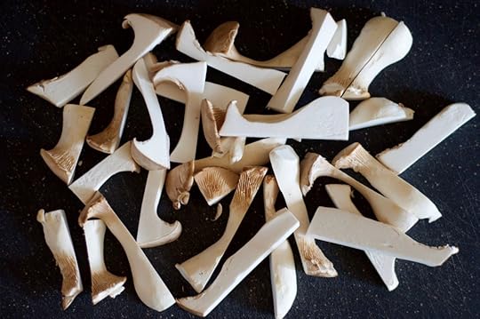 Separate mushrooms like pioppino and oyster into smaller pieces and cut large, fleshy king trumpets into manageable sticks or planks.