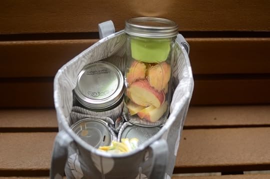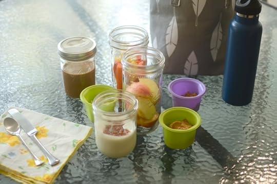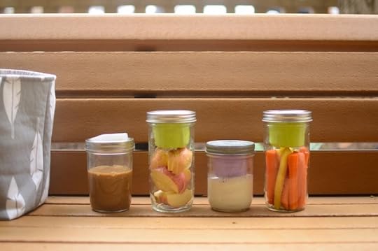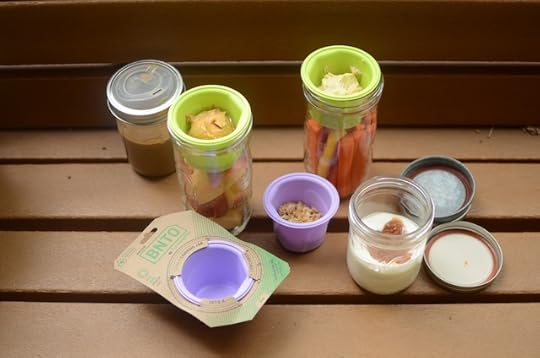 On the particularly day pictured here, I filled jars with carrot sticks, apple slices, and yogurt with a dollop of quince jam. Into the BNTO adapters, I put peanut butter, hummus, and a bit of granola (embarrassingly, it was not homemade). Some homemade cold brew went into a wide mouth pint, with one of my original Cuppow lids secured on top for easy sipping.