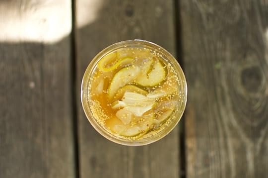Over the past couple of years I have began to notice that unintentionally many of my preserved goods either include alcohol or pair perfectly with alcohol- a strange coincidence, indeed. I’m beginning to think that I “subconsciously” come up with pickle ingredients with martinis on the mind. By no surprise, I admit that I am a sucker for any type of brined, vinegar-based, or bitter cocktail.