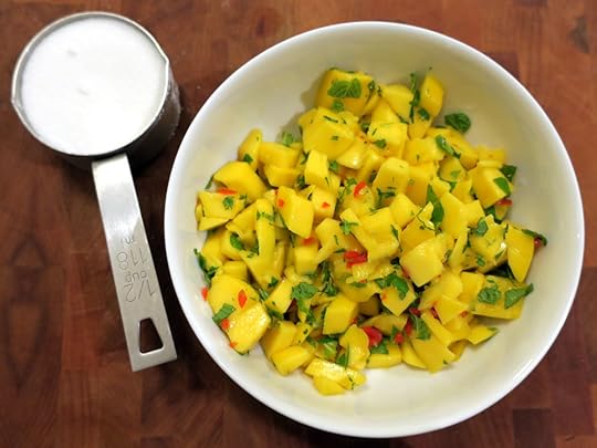 4 1/2 cups chopped mango3 habanero peppers (de-seeded and finely diced)