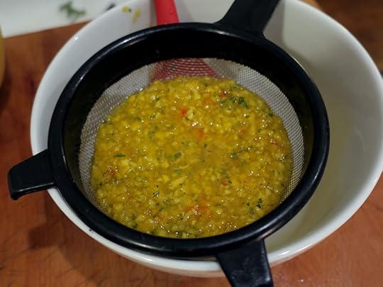 Use a silicone spatula and really work the seeds around in the sieve so that you get all the liquid into the bowl.