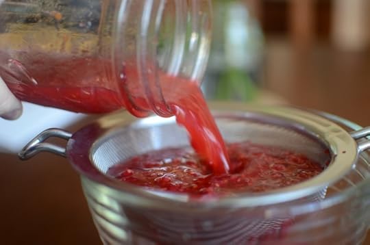 Set a fine mesh sieve over a bowl and pour the macerating fruit and syrup through.