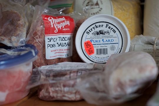 I sorted items by type as I pulled them out of the deep freeze. There weren’t too many surprises, but the biggest shock was seeing all that food set out in one place.