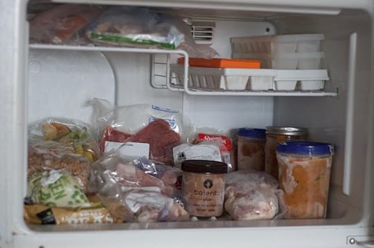 First, I wanted to reckon with my freezers. I have a 5.3-cubic foot chest freezer in one corner of the big front room that serves as our living room, dining room, and kitchen, plus the freezer compartment of my fridge.