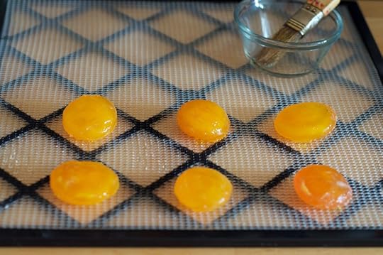 Carefully remove the yolks, which will have become somewhat solid, to a separate dish. Rinse each yolk gently under cool water, then pat dry with a paper towel. Place each yolk on the oiled rack, leaving space between the yolks for air flow.