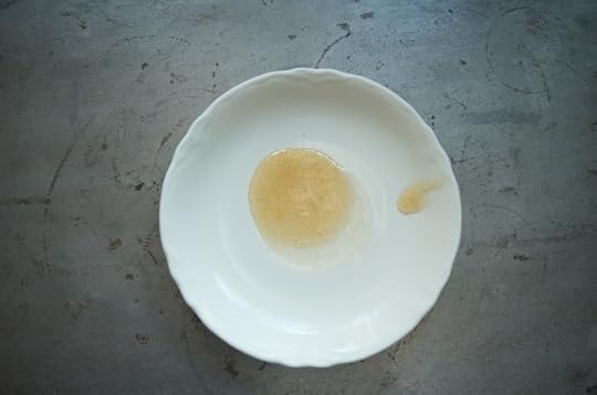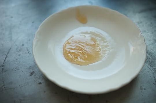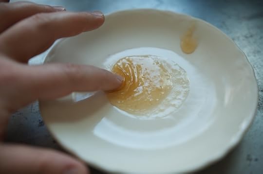 When you hit the point when you think the marmalade is finished, you remove the pot from the heat and dollop a spoonful of marmalade onto the frozen plate. Then, you return the plate to the freezer for a few minutes. This accelerates the setting process and gives you a peek into the future of your marmalade.