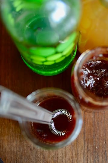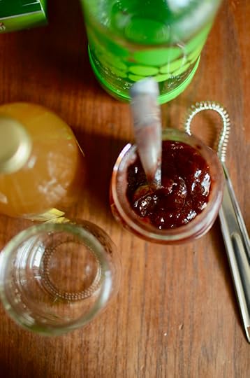 Once your jam and vinegar is well-combined, give it a quick taste so that you can adjust the balance should it be necessary. Too sweet? Add a touch more vinegar. Too astringent? A little more jam. Just remember that you’re about to dilute your instant shrub with sparkling water, so it’s okay that it is strong.