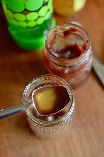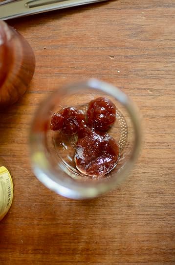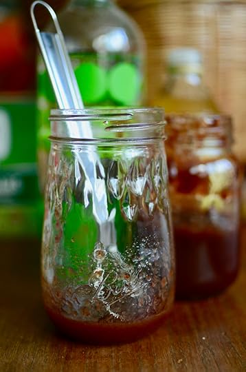 In the jar I plan on using for my drink, I combine two parts jam with one part vinegar (if you think about it, this roughly mimics the ratios found in most recipes) and whisk them to combine. If I have any tender fresh herbs (like mint or basil) around, I will bruise them and add them to the party for additional flavor.