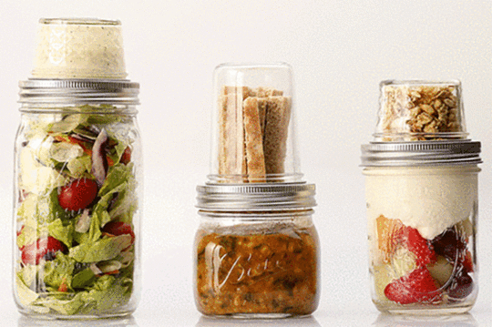 The Mason to Go allow you to use your mason jars to easily pack up breakfast, lunch, or a snack and take it with you as you move through your day. Think about handy it would be next time you want to bring a salad with you!