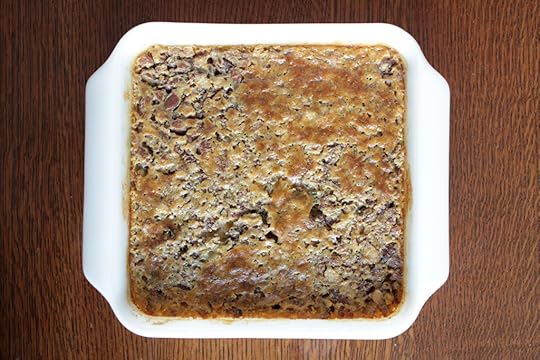 The finished baked oatmeal has a pleasingly nubbly texture from the steel cut oats and the plump, tender raisins are welcome counterpoints. If you hate dried fruit (particularly the rehydrated variety), feel free to use fresh fruit like Ali does. I like what the raisins do, and love the fact that all I have to do is tip the jar (rather than wash, peel, or chop).
