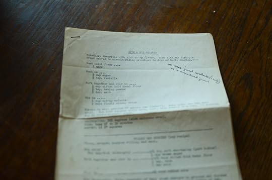As I reshelved a stack of community cookbooks, a type written and stapled recipe handout fluttered out. The paper was yellowed and the page was annotated in faded ink. The first recipe on the page was for Date & Nut Squares. I stood in the hallway, unshowered and with babies playing on the floor, reading through the short recipe.