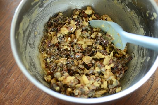 I had all the ingredients and 45 minutes before the next nap needed to start. I walked straight to the kitchen, whisked up the batter, and chopped up some dates and walnuts. Within five minutes, I had the bars in the oven (I even managed to take a few pictures!).