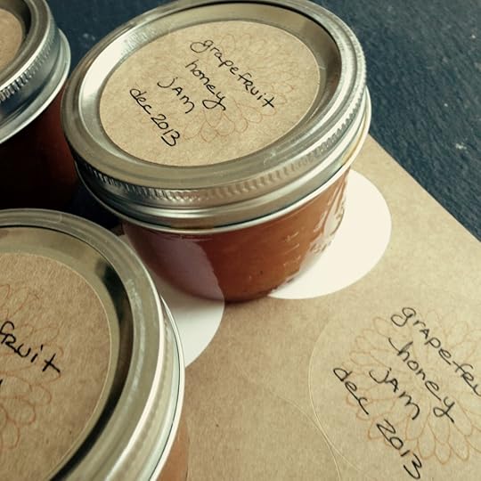 I thought I’d better get my act together and write up this recipe before all the good grapefruits turn into strawberries, as they will before we know it. (You can see from the date in the picture that I’ve been meaning to get to this one for a while.) One of the reasons I’m keeping this blog, these days, is to document my experiments replacing sugar with honey in preserves, and this one was worth scribbling down.