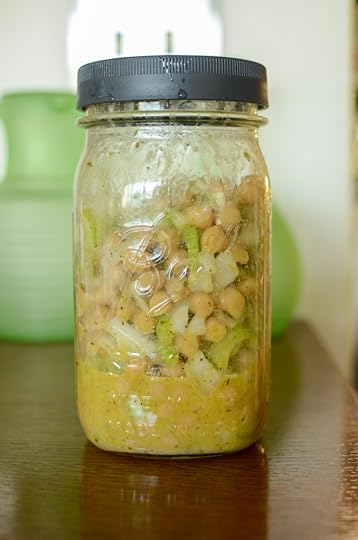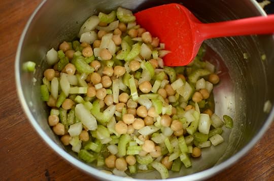 From there, it was a matter of combining chick peas, celery, and onions, and bathing in the dressing (I used half a batch). It was good and well-received at the potluck, but the leftovers continued to soak up flavor and goodness and were even better the next day.