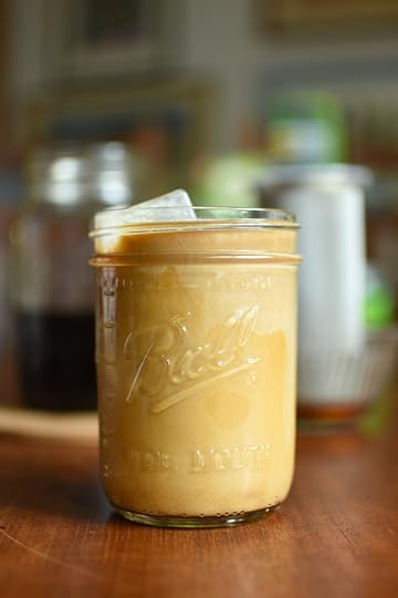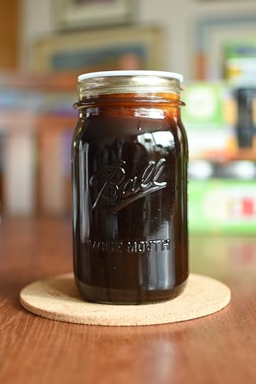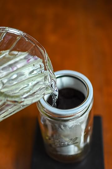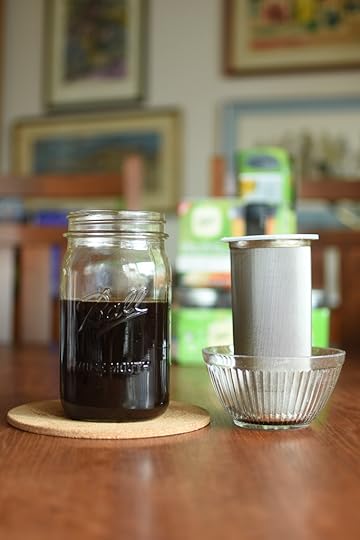 My favorite way to make these iced morning drinks to cold brew them in mason jars. It’s a simple process of putting ground coffee (I use 4 ounces of ground coffee in a quart jar) or loose leaf tea (2-3 tablespoons) in a jar, covering the grounds or leaves with water and letting them steep overnight.