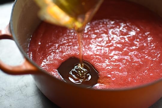 This gorgeous butter is really rich-tasting and has a gloriously deep berry color. I like it dolloped onto a scone or stirred into plain yogurt, but it can be used anywhere that you enjoy jam (it would make an excellent bar cookie). Click here to get the full recipe for Strawberry Honey Butter.