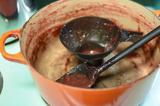 If you have a splatter shield, position it on top of the pot while it cooks down. It’s a great tool to use for any stove top butter, as it helps contain the mess and keeps errant splashy bits from landing on hands and feet.