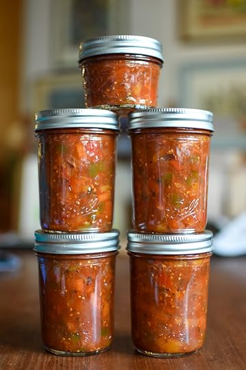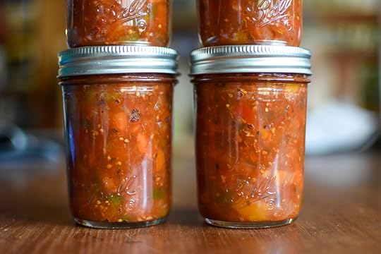 I think I cooked my relish down a little bit more than intended, because my yield was lower than the recipe indicated. However, knowing that yields can vary a lot, particularly when you’re working with tomatoes (mine were quite juicy), I’m not upset by it. Who could be upset with four half pints and one quarter pint of something so delicious?!