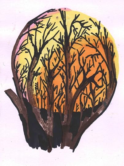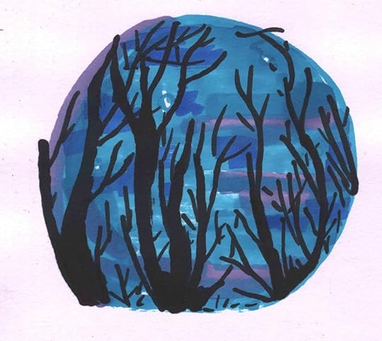 At this time of year, the view from my living room window is of bare branches. The sun sets behind them, late in the afternoon. Most days, I sit somewhere I can watch the changing light. It’s often one of the most colour rich moments of the day. Sometimes, the winter sky is a dramatic blue as we shift towards night time.