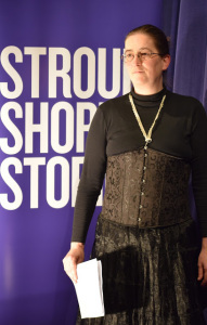 Here’s me glowering for the camera at a recent Stroud Short Stories event where I read in first person as Mrs Beaten. I’m rather pleased with how this unflattering photo came out!
