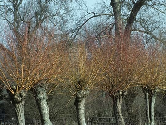 Osier willows are popular for pollarding and coppicing. With a pollard, you cut the tree somewhere up the trunk to get a lot of fine growth, as with the photo. Coppicing is at ground level. Once you’ve started pollarding a tree, you have to keep doing it or the weight of the growth will tear the trunk apart. It tends to be willows and hazels that are pollarded and coppiced for the very usable material this produces. As the age a tree can get to is to a large extent limited by its size, this kind of cutting can increase the life expectancy of the tree. Trees that have been cut in this way will keep producing new material year on year, so it’s quite a sustainable way of doing things.