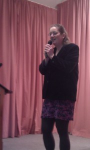 If the first time you get on a stage you do it to read, with a microphone, or talk, this is intimidating. Authors on stages need stagecraft as much as musicians do. You have to be able to look at the audience, talk to them, not just read to them. You have to be able to answer questions, and if you seem confident and relaxed, it’s a far better experience for them.