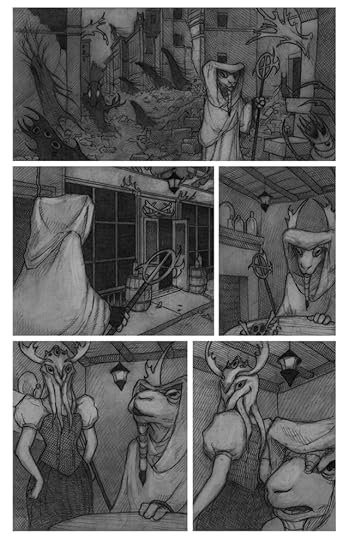 I firmly believe that art should be affordable for everyone. For twenty five of your English pounds, Tom Brown will carefully roll an original page from Hopeless Maine or The Raven’s Child into a tube and post it to you. For £45 you can have two and we’ll throw in a poster. If you’re outside the UK, postage is a little more expensive. Original pages (as with the image in this post) are hand drawn in graphite, and are unique – each one having gone on to be a page in a book. They aren’t quite the same as art intended to hang on a wall, but they are most certainly art, and also very cheap, even by the standards of comics pages. Leave a comment if you’re interested and we’ll email you.