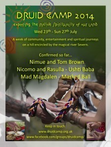 In the meantime, here is a flier. It’s not a really real Druid camp flier, even if it is on the website, because in no sane reality would I be the headline at an event like this. It was very kindly made, I think because I’d said that one day, I hope to reach a point in my life and work where I’ve done enough to be worth someone putting on a flier. To be thought warmly of by a friend, and honoured in this way is no small thing, and it was a humbling sort of experience to see this.