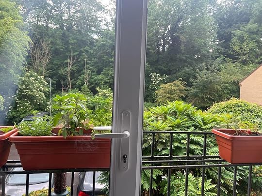 In my time on Hadrian’s Wall, I had a great doorway for sitting in. At the moment there are exciting glass doors that open onto greenery and it’s a bit like living in a treehouse. I like the idea of living in a treehouse, or in some building that intersects with wildness in deliberate and responsible ways. Oddly enough, living on a boat didn’t give me that, the boat felt like a very closed thing, and there was only watery movement in stormy conditions.