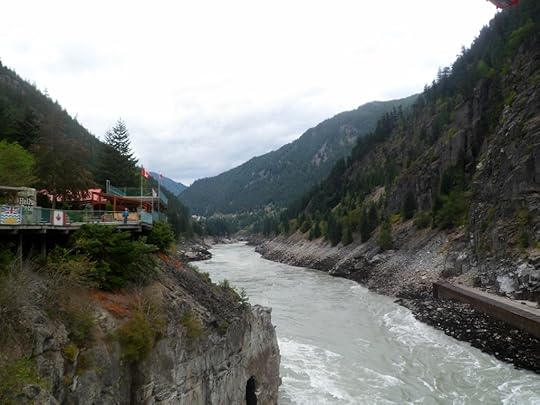 Then you descend, in a perfectly safe, Swiss-made air tramover the terrifying Fraser Canyon, downward, where only