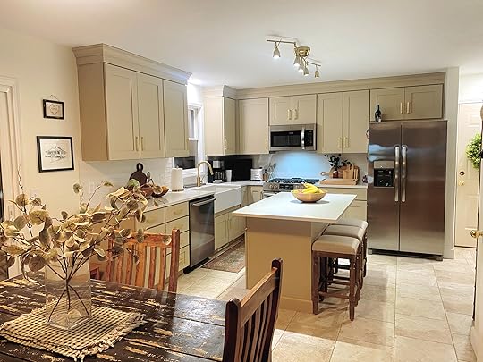 Currently, I'm a fan of the styles in For the Love of Kitchens and The Established Home. I am leaning into an Unkitchen aesthetic. But also, I don't know if I'll live here forever. I was aiming for something I loved but also not so “custom” to me and my taste that it would turn off a potential future buyer someday. In addition, we have a nice house in a nice neighborhood, but it isn't a million-dollar listing type dealio. Spending half the price of a house on a kitchen redo, to me, seems nuts. I kept costs in line with our budget by using my Menards rebate to buy the sink, hardware, and sink fixtures. I chose in-stock, not a special order, countertop materials, and I was my own kitchen designer. That way I paid my installer and for the materials but not for markup or an interior designer. If I had a third career in life, it would be kitchen design, I find it so much fun! I made a few missteps on lighting and had to return a fixture or two until I got the look I wanted. Wayfair made that process a breeze, btw.