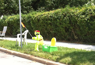 Thanks to Erica F. for this photo of someone who wants to be in the swing of things while they watch the parade. (Note the yellow "caution" tape. Another way to stake your spot.)