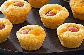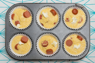 I decided to experiment with mini corn dog muffins and they were a huge success. You can make them in muffin tins, or mini muffin tins. Don't they look good? And of course, they're baked not fried.