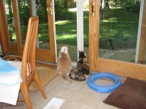 Sometimes, of course, the soft breeze and the cool Italian tile floor is just so relaxing, the cats fall asleep! As you know, "cat naps" are one of their favorite occupations.