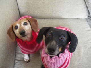 So Today, I'm posting cute photos of daughter Serena's and s-i-l Jeff's sweet Dachsund Oscar. Yes, I've posted many, many photos of Oscar over the last two+ years that Serena and Jeff have been together. Plus some photos of my doggies. Mary's post yesterday about their adorable Dachsunds inspired me. Plus, Oscar let's Serena and Jeff dress him up. But I'm also compelled to give our friends who are Cat owners and lovers some love first. :)