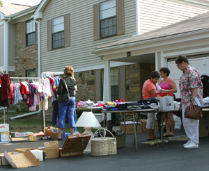 I couldn't believe it when four cars showed up at EXACTLY 9 am. One piece of good luck; one of the neighbors decided to hold a yard sale, too. That meant we were getting double coverage. YAY!