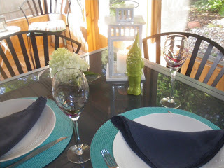 We’ve learned the hard way that celebrating anniversaries at home with a nice meal and some good wine is the way to go. We'll have a treat from the grill and eat in the screen porch. Casual, but there is a candle (and the gnome so we'll behave)