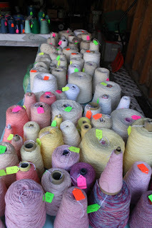 I've found unfinished quilts, sweaters, doilies, socks, afghans--some she started, some she bought at yard sales. But most of all there's her quilting material and her yarn. We're not talking a few skeins or a few cones of yarn, and we're not talking about a few fat quarters of quilt material. We're talking hundreds of skeins of yarn, scores of cones of yarn, and about 15 LARGE tubs filled with quilting material, all stored in a damp basement. (The dehumidifier died some time ago. Guess who went out and bought a new one on Wednesday?)
