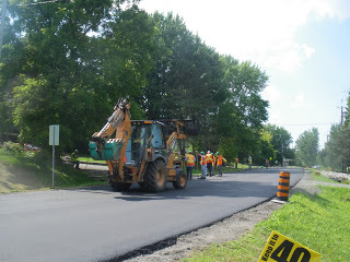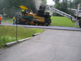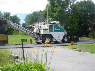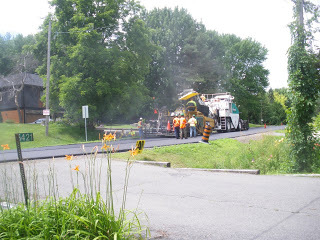 As a writer, my worst enemy is distraction and yet look what was happening right outside my window for the past two weeks! How unfair is that? Yes. I know. We desperately needed that crumbled road surface replaced. No arguments. But I am trying to finish the first draft of my seventh Camilla MacPhee mystery. At the rate I'm going, you'll have plenty of time to catch up.