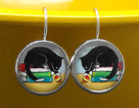 There’s a chance for you to win one of three fabulous prizes too! (A black scarf, paw print dish towels, and cat/book earrings). All you have to do is comment of ask a kitty a question and you’re entered! We’ll pick three lucky readers August 4th, the day our three books hit the shelves!
