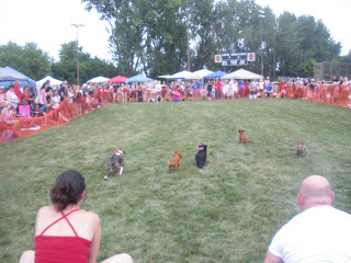 I am sure that there were at least a hundred and twenty little hot dogs, but the park was spread out, so it was a bit hard to get shots of large numbers. I am sure you get the idea from these here and there shots. Lots of little dogs less than knee high.