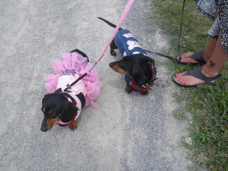 Last year at a doxie event they won as a bride and groom. That white veil really took a beating as they raced around. This was all that was left of the veil by the time I got a photo!