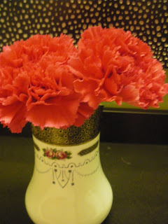 By deconstructing the bouquet, I was able to get six different small and very simple arrangements for practically every room in the house, including these vivid carnations in the powder room.