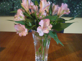 A quick trip to the store yielded a bourquet of flowers ON SALE and in decent shape, with six different types of blooms.