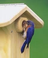 us a bluebird house and sure enough this spring they claimed it as their own. The nesting took at least a month and kept them very busy. When the geese and ducks began swimming by with their recently hatched babies, we could tell the bluebirds had children in that little house, too.
