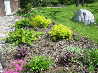 We’ve been busy with perennial beds and paths and trying to maintain the so-called lawn until we come up with a next steps plan. So far our plan here is to eliminate as much of the grass (it’s hard to think of it as a lawn) as possible in the next couple of years, substituting pea gravel, mulched flower beds and ground covers like periwinkle and lily of the valley. Unfortunately, we'll be mowing until the project moves to the next step.
