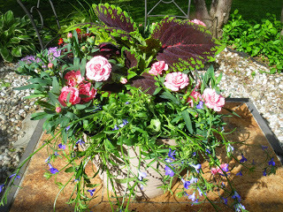 Next, I tucked the lobelia around. Fingers crossed that it will like a sunny spot. If not, we'll switch it out.